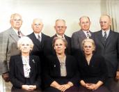 Sitting Cameron Lily, Wilbur, Lois with Cameron Jrs daughter, Saidee, in back Nonie, Cameron Jr, Walter Wood, Mae TUten cir 1954