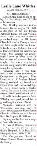 Leslie Grace Locke was mentioned in the obituary of published on 2 July 2014 in Georgetown Times, Georgetown, Georgetown, South Carolina, USA.1,4,5