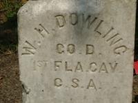 The year 1880 found him in the final working years of his life; he was the village smith in Baldwin, Florida. Shortly afterwards, he became totally disabled; he died after years of incapacity in Jacksonville, Florida, at a son's home. His grave is marked by a CSA cross in the Gravely Hills (Priceville) Cemetery in that city; he died April 18, 1885.2 As of 20 December 1831,her married name was Dowling.1