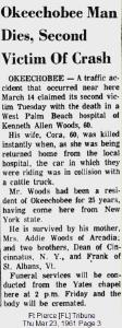 Kenneth Allen Wood was mentioned in the obituary of published on 23 March 1961 in The Miami Herald, Okeechobee, Okeechobee, Florida, USA.21