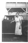 Mabel McCord Wood in front of her cafe, The Dew Drop Inn, in Fellsmere Florida